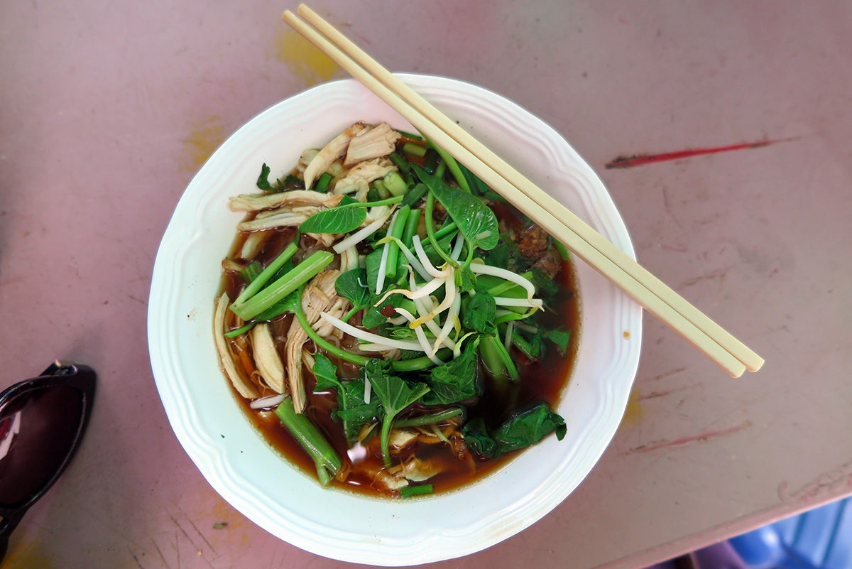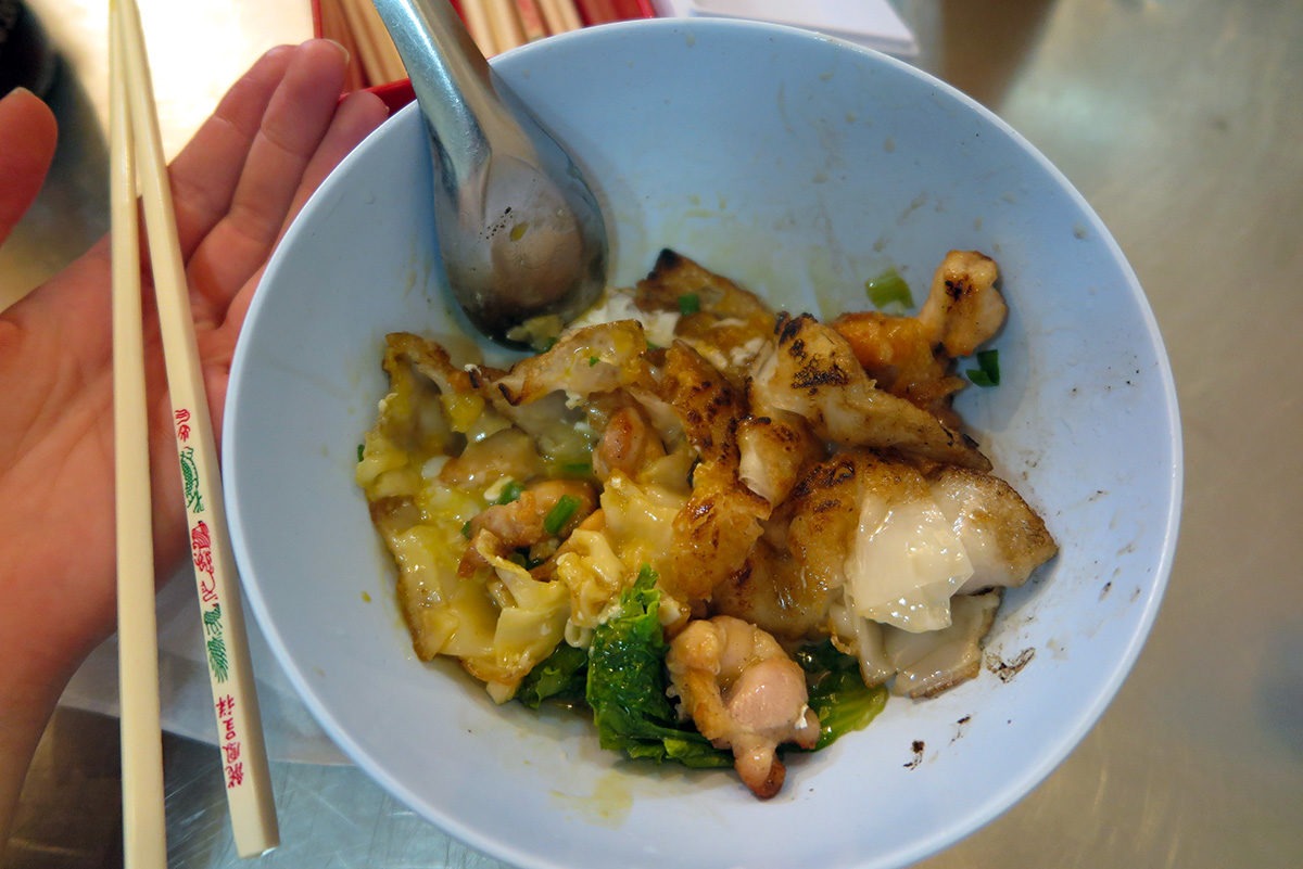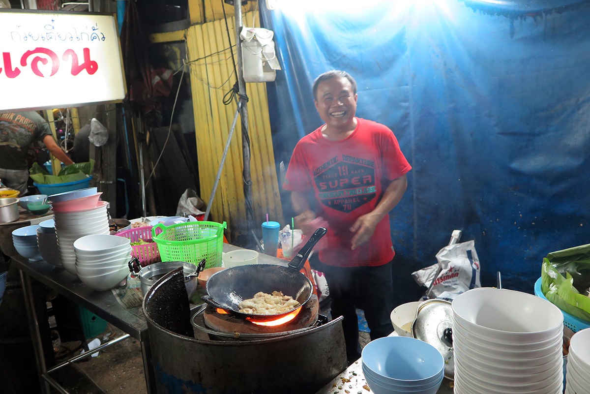 - Phlap Phla Chai area – there’s a long and dirty-looking street full of stands, famous for a special Thai noodle dish called kuay teow kua gai. This place is a bit tucked away and I can’t imagine trying to find it on a first visit to Bangkok. So it really came in handy to stop here with Bangkok Food Tours.